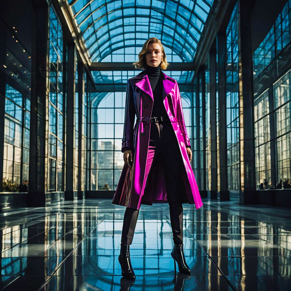 Fashion Model in Futuristic Glass Atrium
