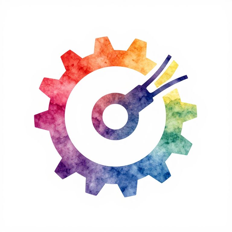 Rigging logo with a watercolor mechanical cog, white background, modern design, bright vibrant colors,