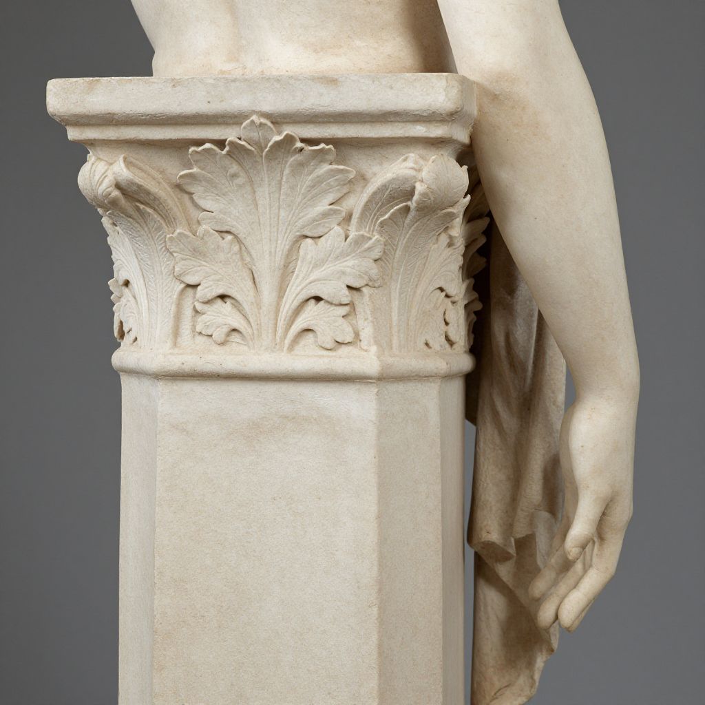 Shy, Alma-Tadema -- Excellent Study of Roman Sculptural foliage (acanthus) on the pilaster behind the woman's right arm.