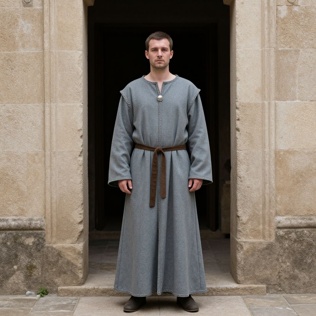 Simple Medieval Costume, man in a robe standing in front of a doorway