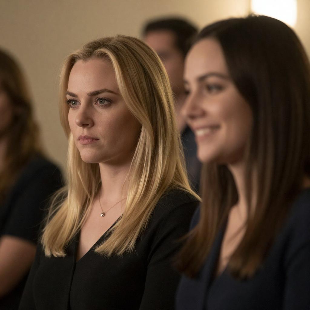 Two Women Standing in Dimly Lit Corridor