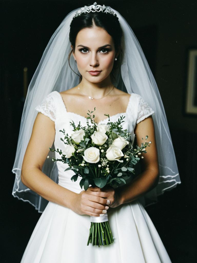Wedding Bride Halloween, bride in a white wedding dress holding a bouquet of flowers