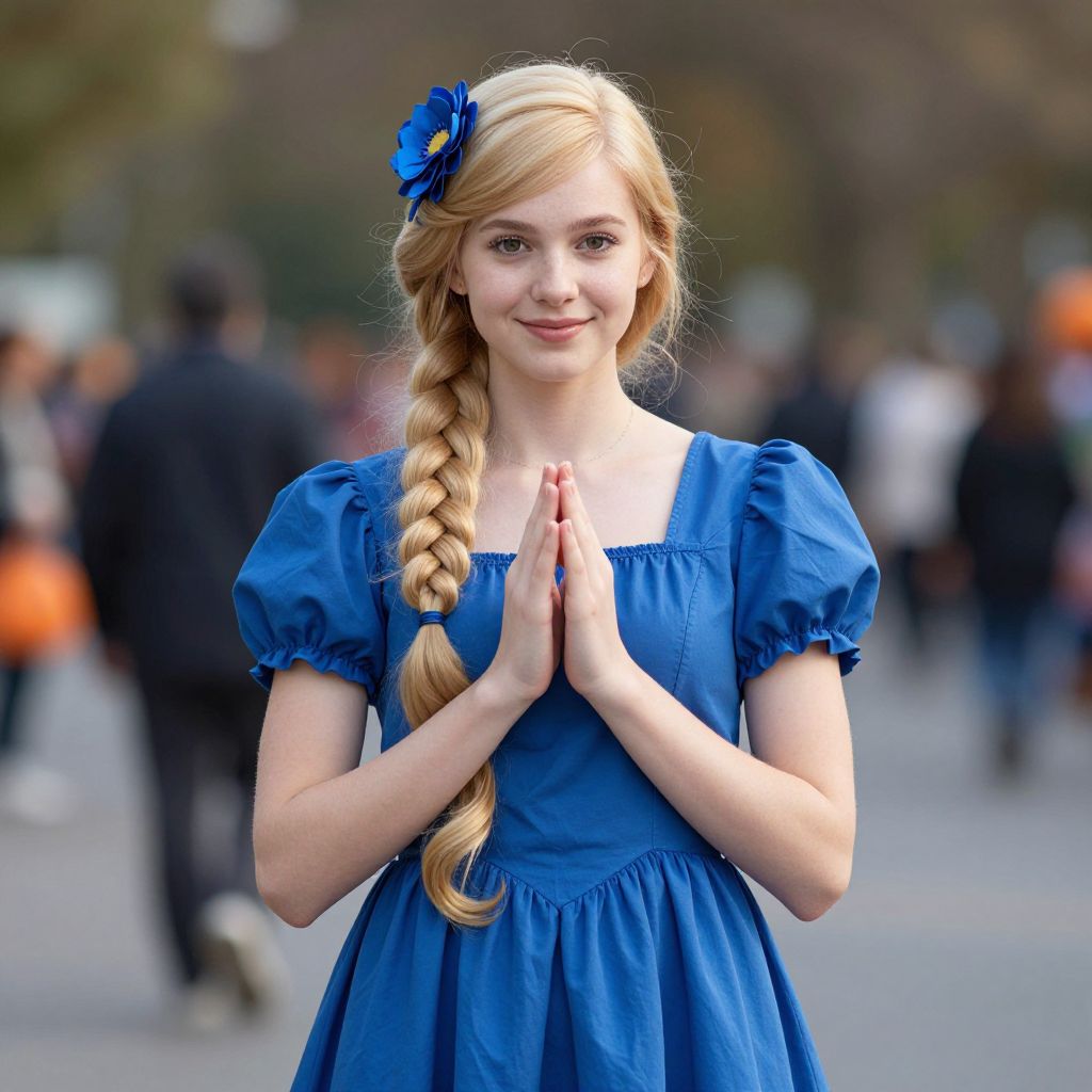 Blonde Girl in Blue Halloween Dress