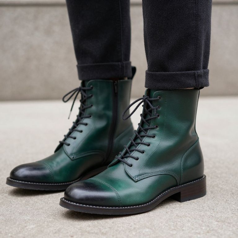 BESPOKESTORES Ankle boots Handmade Green Ankle High Lace Up Leather Boots, Men's Oxford Boot