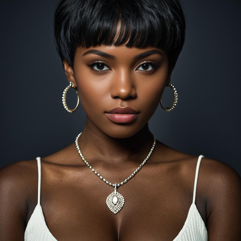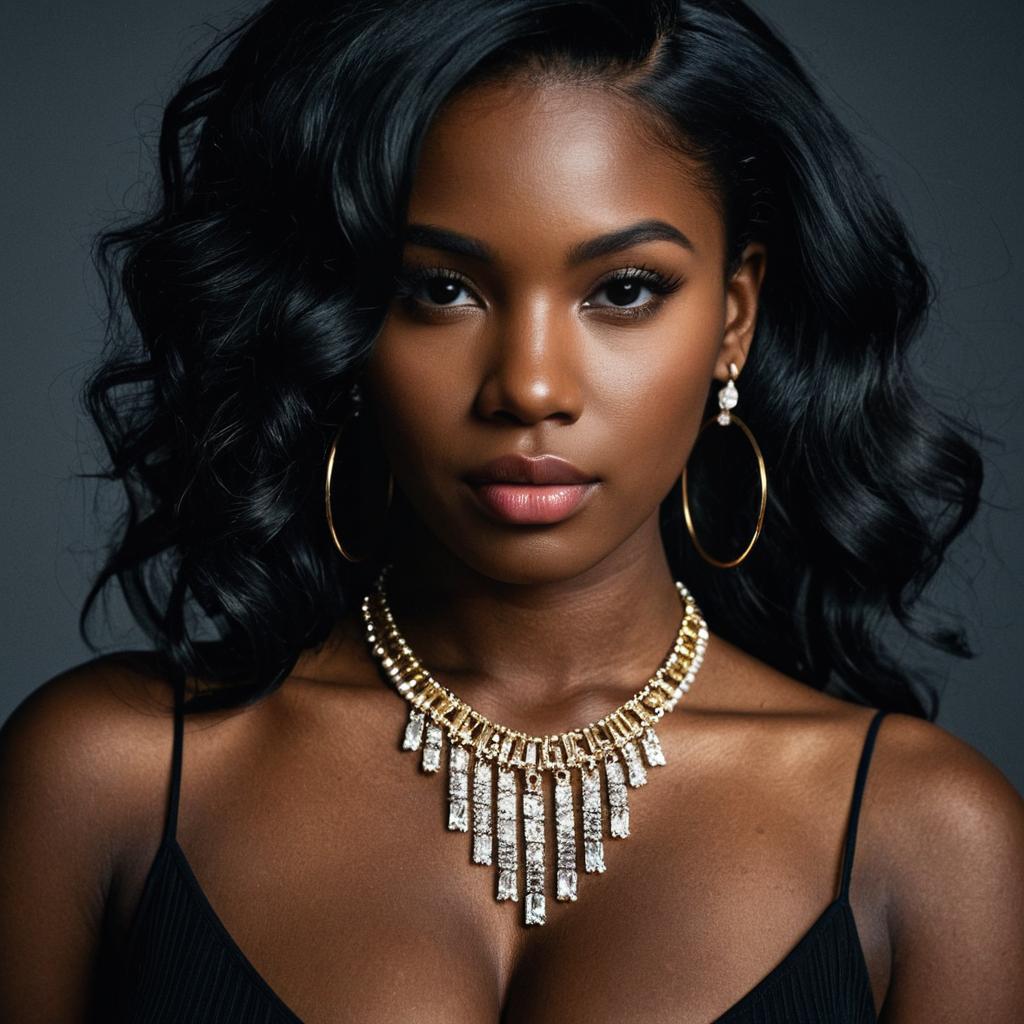 Dark-Skinned Woman in Elegant Black Dress