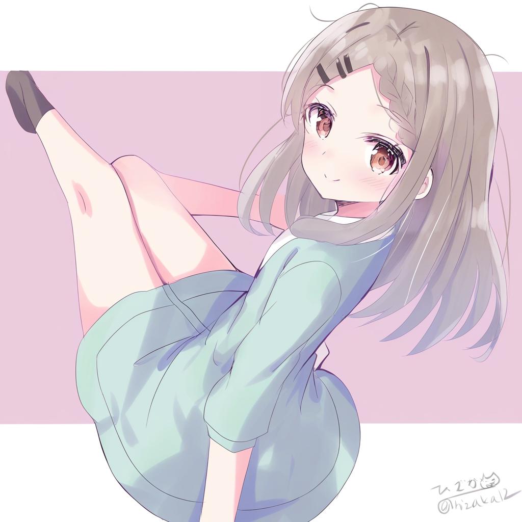 Aoba kokona, yama no susume, 1girl, red eyes, brown hair, long hair, braided bangs, hairclip, by artist randomboobguy, illustrious