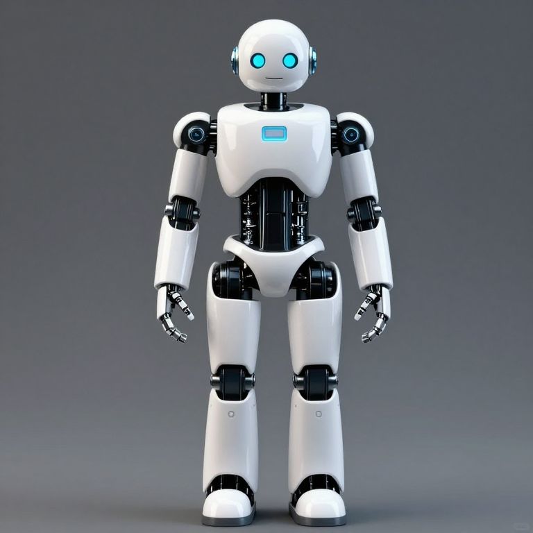 Spandex realistic photo 4k full body size friendly looking artificial intelligence robot facing face towards camera,