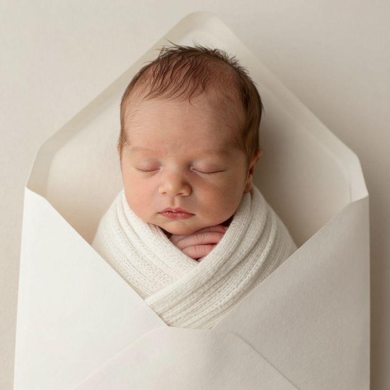 Enveloped in soft textures and gentle hues, the newborn rests in a cocoon of serenity, embodying the innocence of new beginnings and the tender promise of life's endless potential.