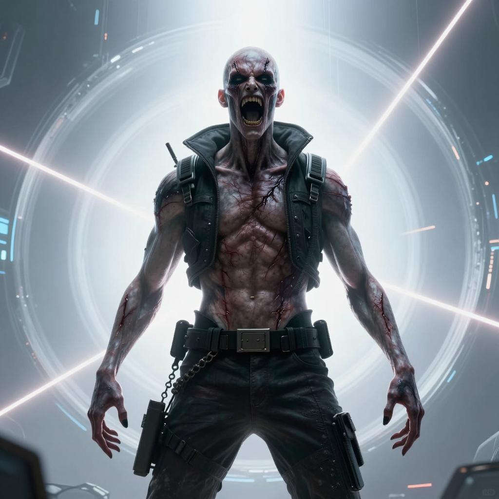 Terrified Man with Dark and Translucent Creatures