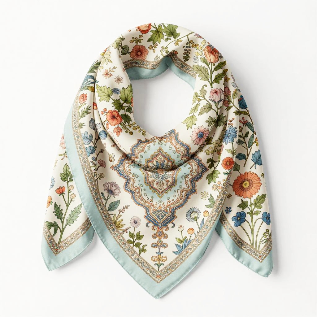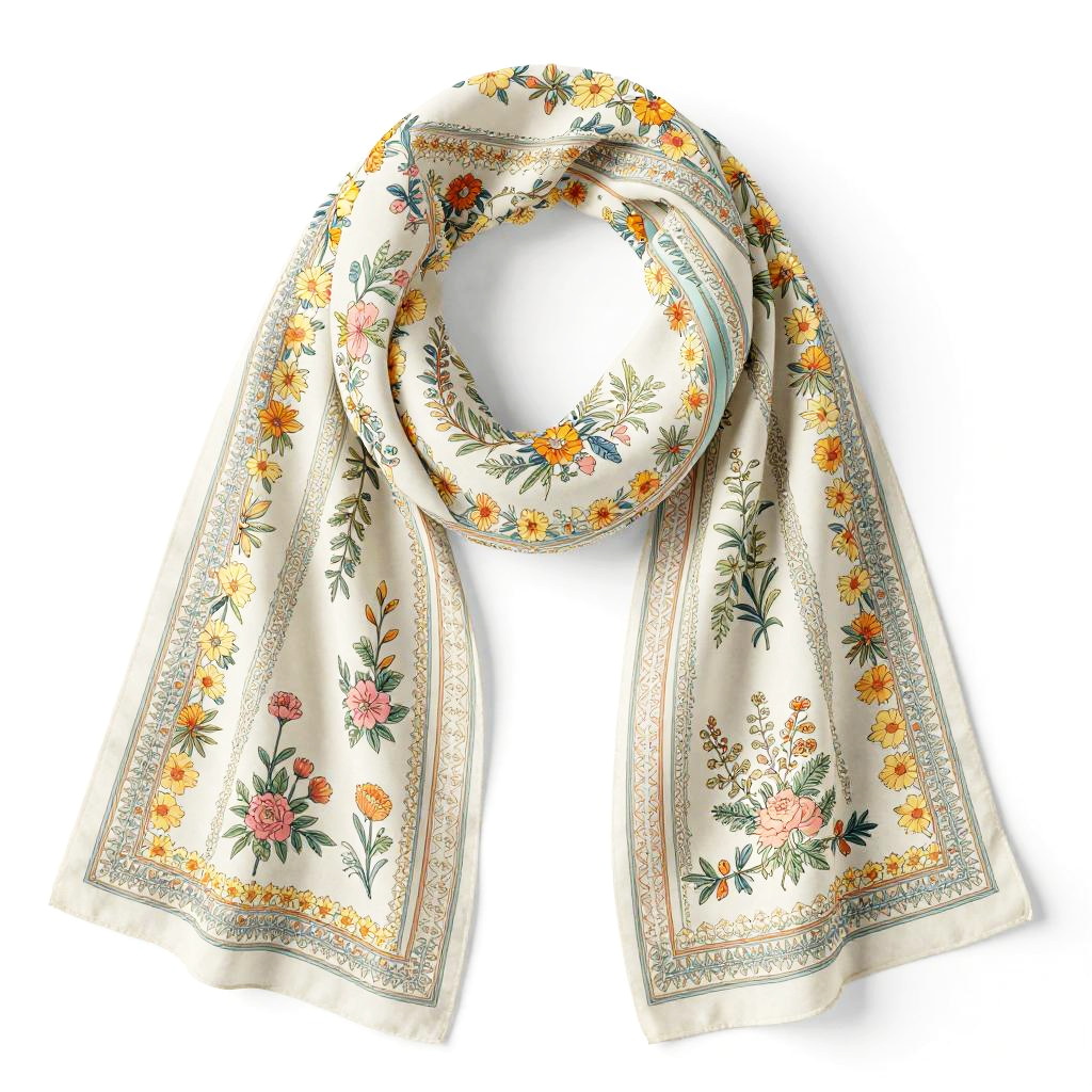 Elegant Floral Scarf Vector Pattern