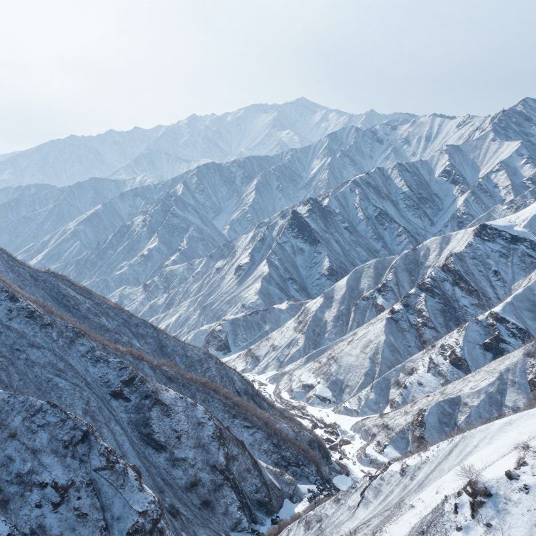 Mountains made of frozen thoughts rise and fall in a valley of silence, reshaping themselves according to the silent prayers of travelers.
