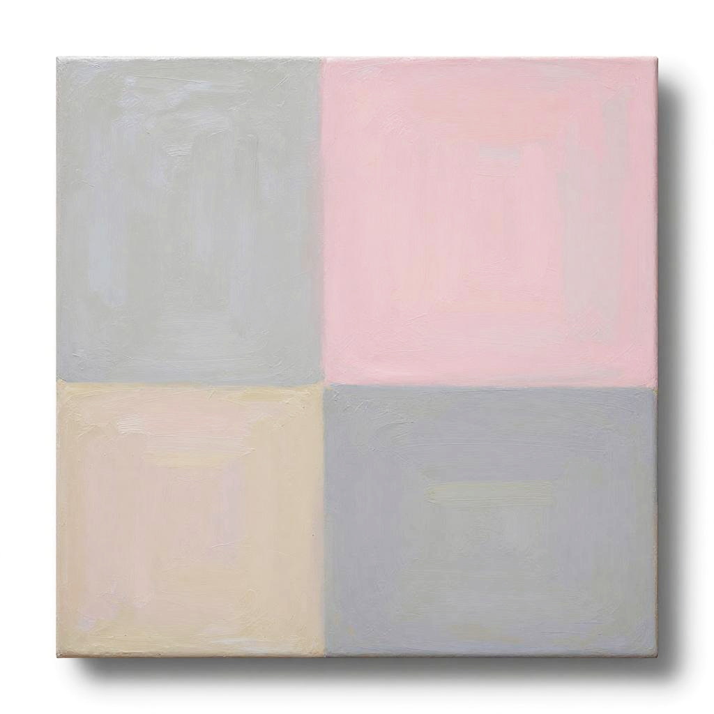 Abstract painting with low saturated colors, smooth gradients, gentle blending of pink, gray and beige tones, minimalist brush strokes, modern art gallery style