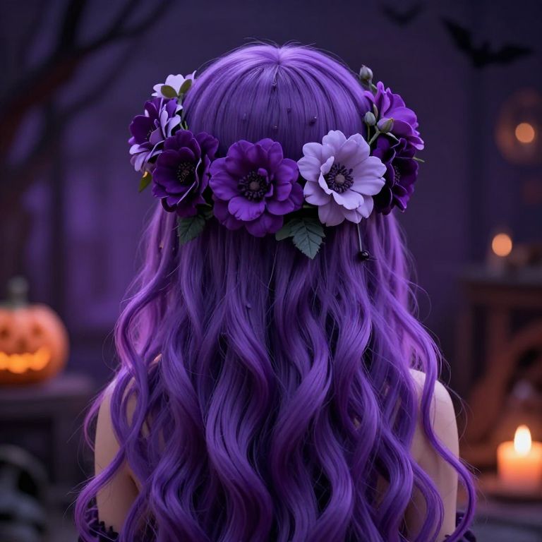 Violet Flower Halloween, purple hair with flowers in the middle of it