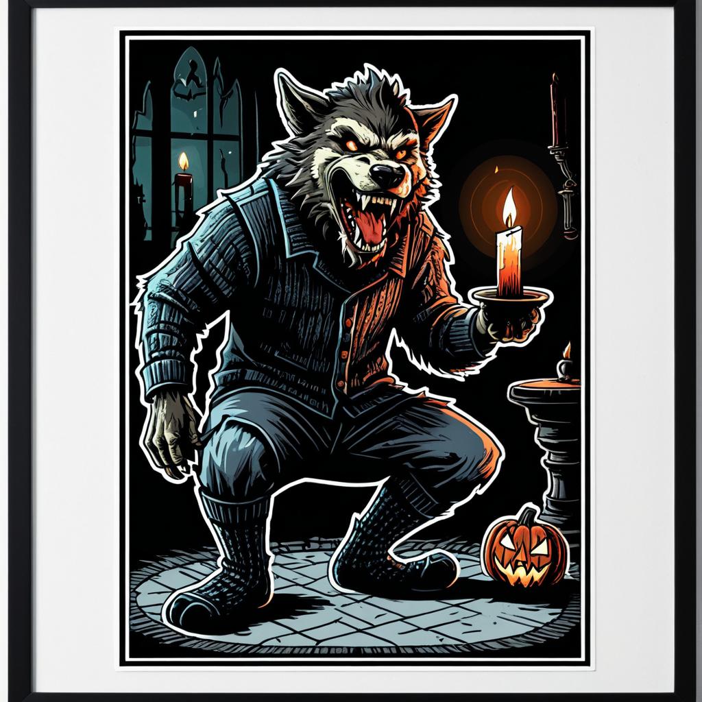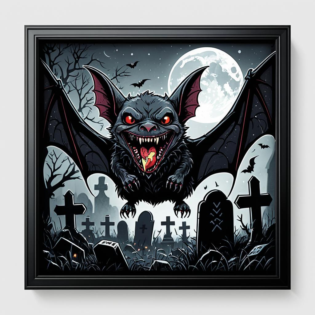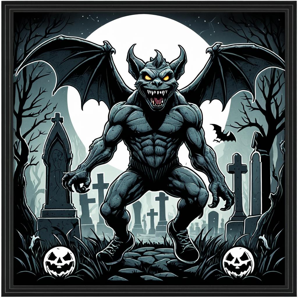 Black Cat in Haunted Graveyard with Glowing Mushroom