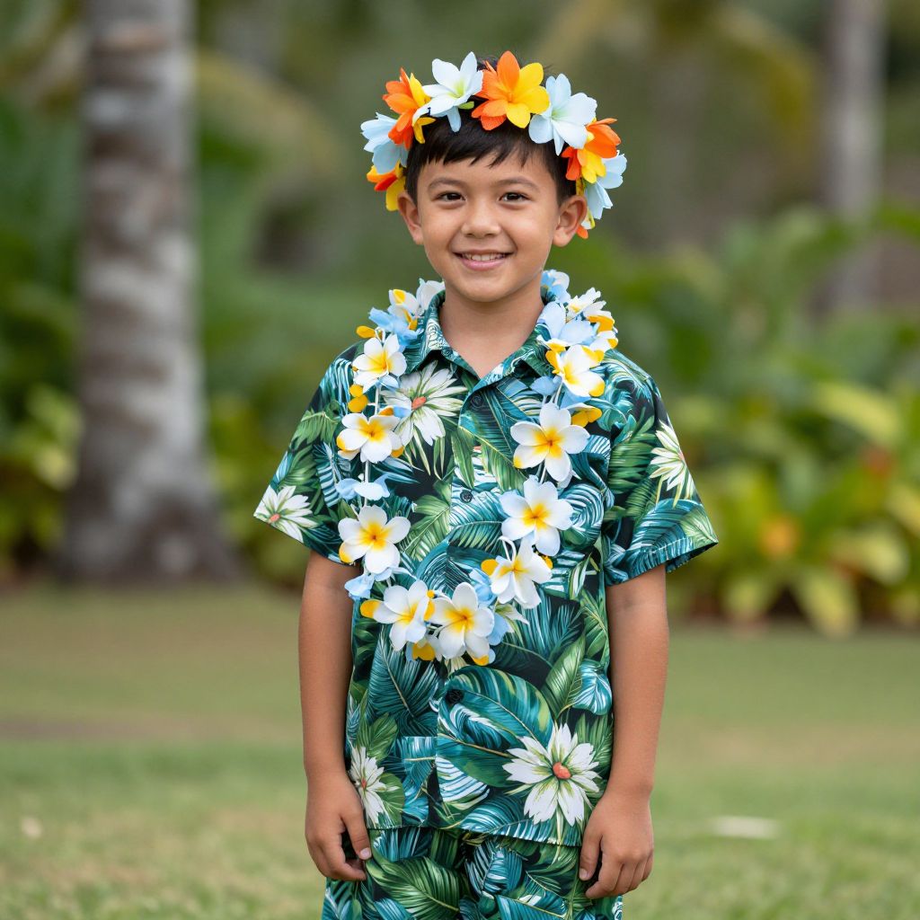 Boy in Hawaiian Costume with Headband