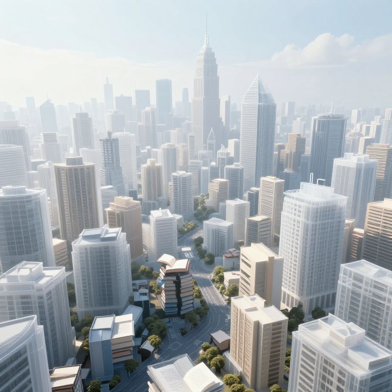 A translucent city hums above an endless sea of books, where every breeze reshapes the stories and unwritten pages bloom into new streets.