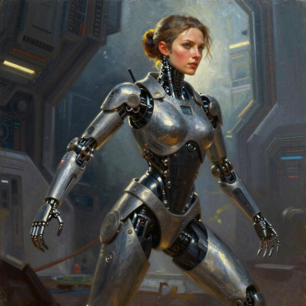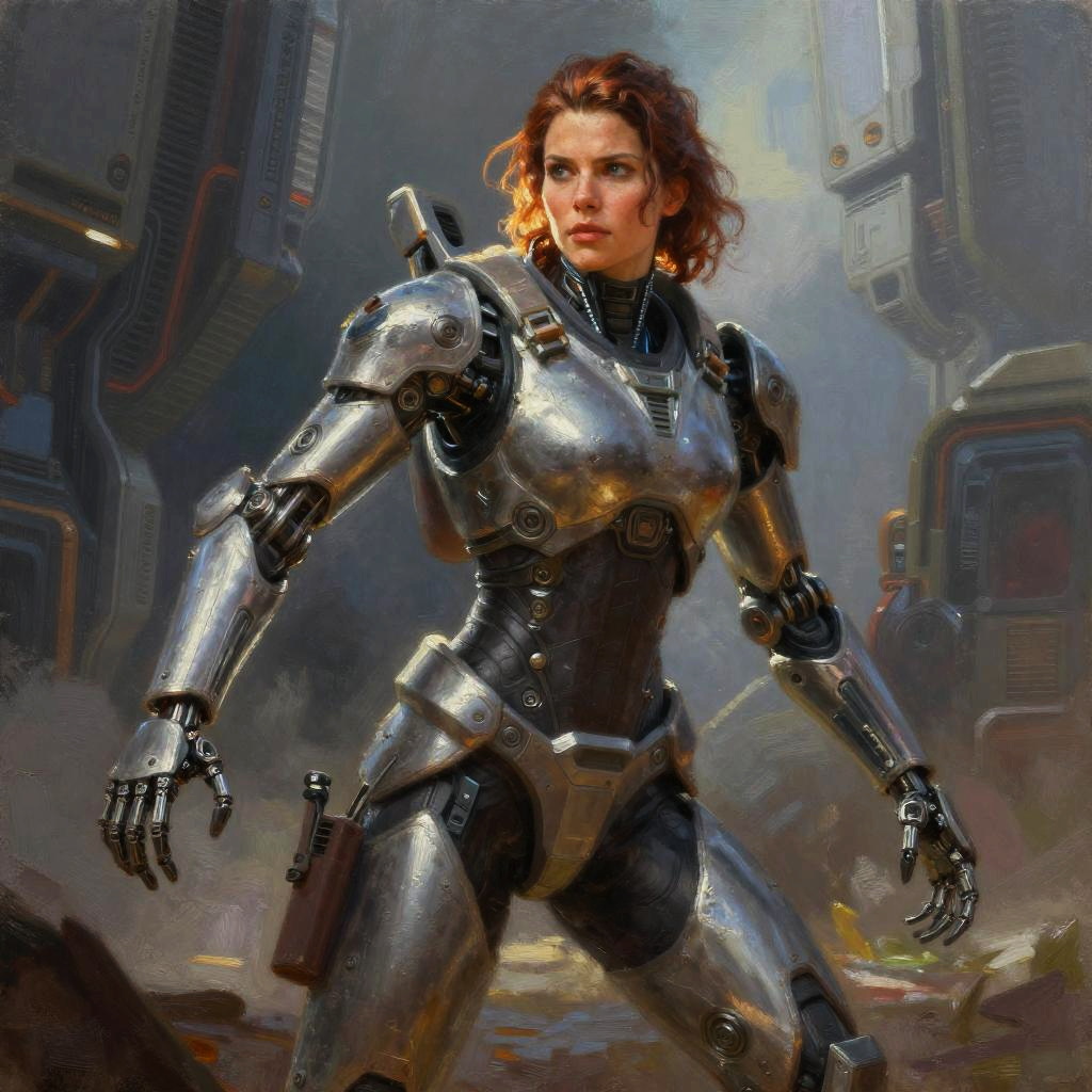 Cybernetic Scout Leader Oil Portrait
