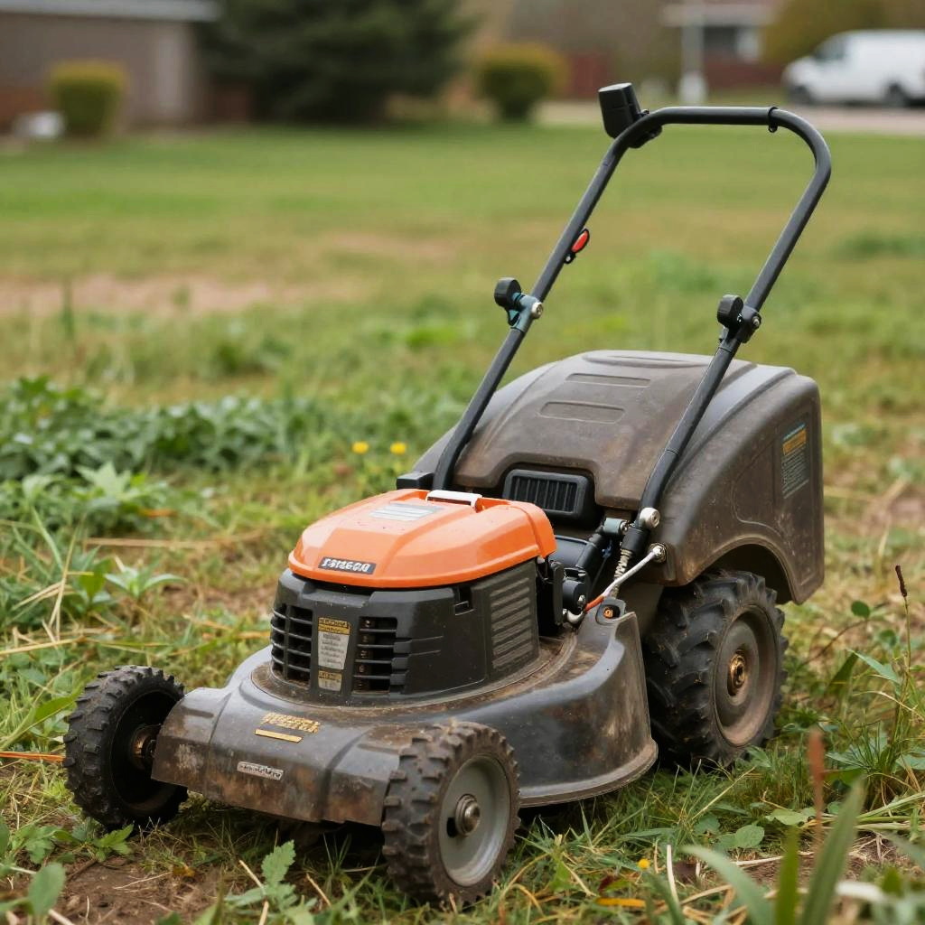 Best quality, masterpiece, realistic, detailed, TerranAI, lawnmower, outdoors