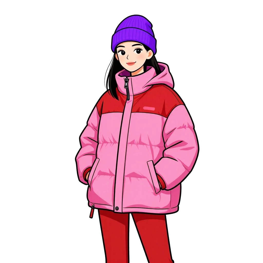 Woman with pretty face and pretty hair. Woman, casual sporty, bright pink windbreaker jacket with front zipper, high collar, elastic-cinched waistband, long sleeves with elastic cuffs, matching pink casual pants, plain white background. --sref 1467
