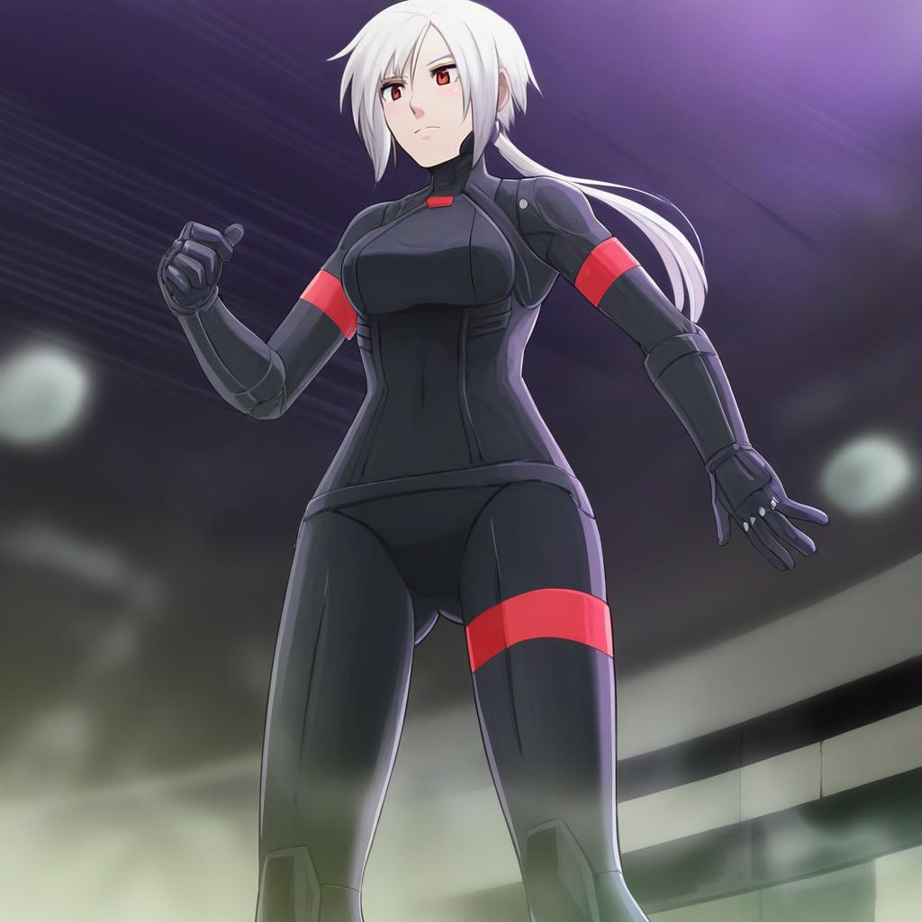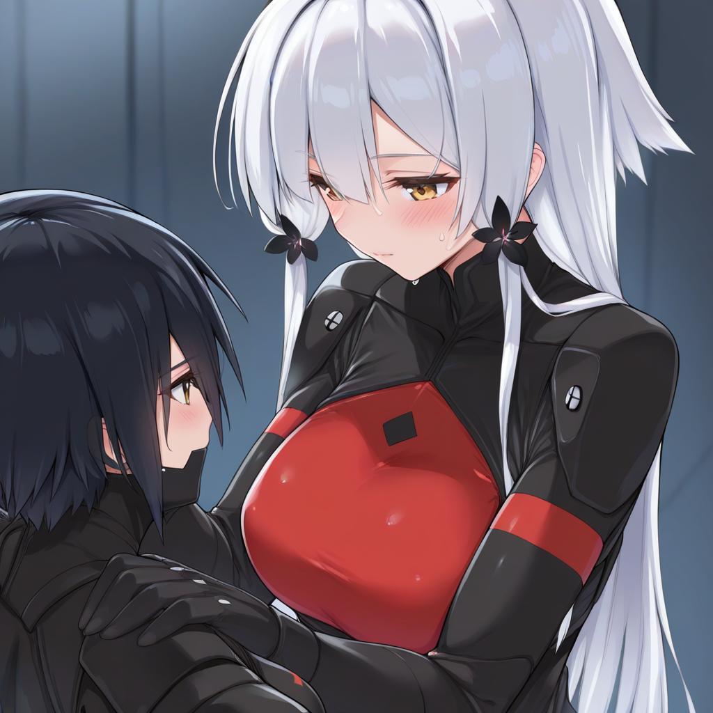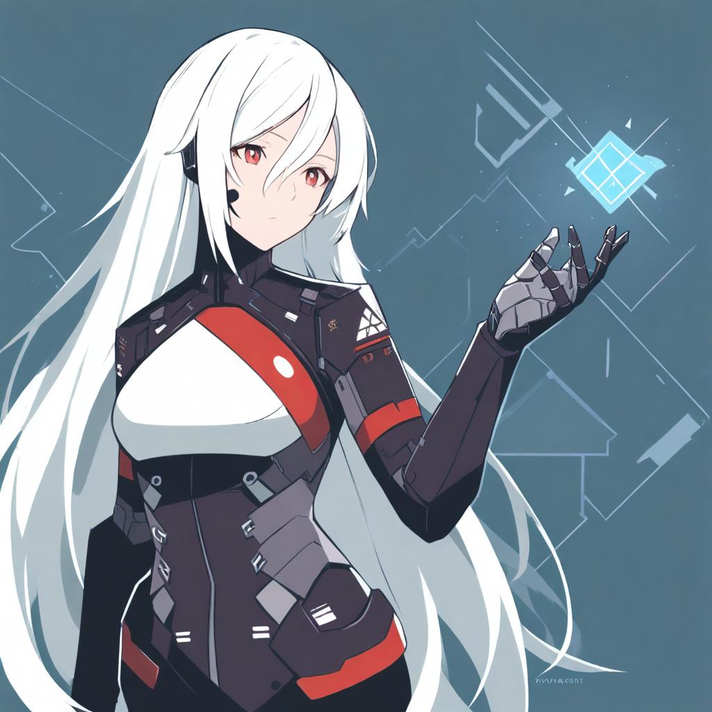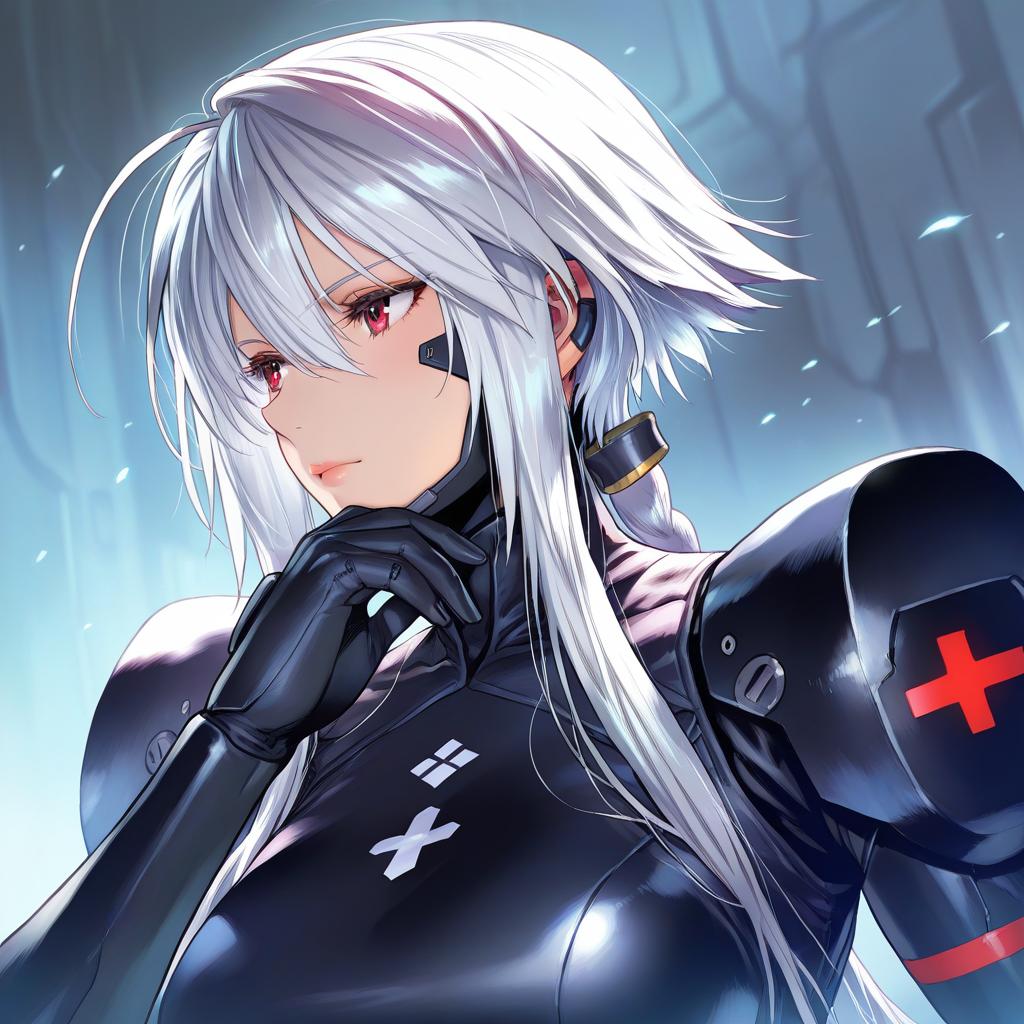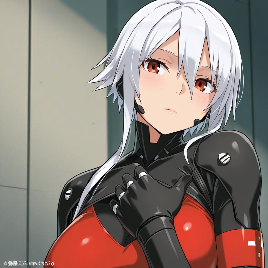 Ariane yeong, signalis, 1girl, red eyes, white hair, long hair, short hair, android, by artist imaichi, illustrious