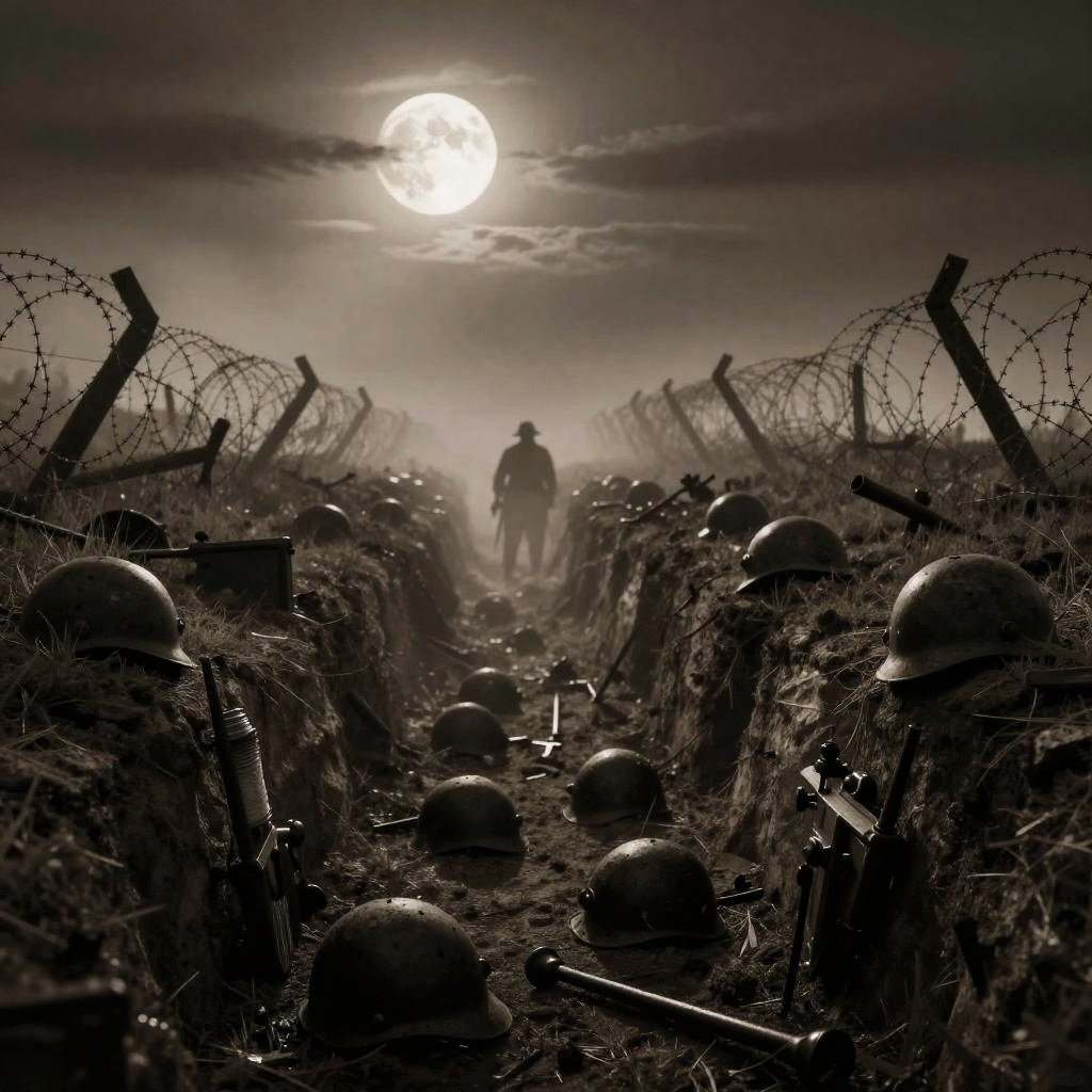 Eerie WW1 Trenches in Ghostly Moonlight