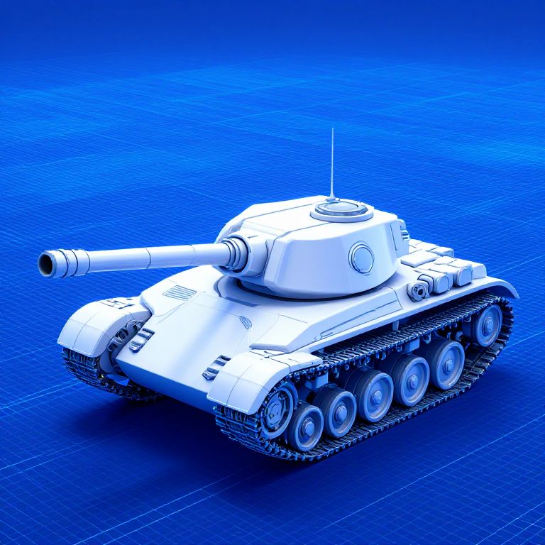 Terminal a aerodynamic sleek light tank from tron, armed with a asymetric cannon, sitting in a blue line computer generated terrain, in the style of synthwave - Upscaled by,