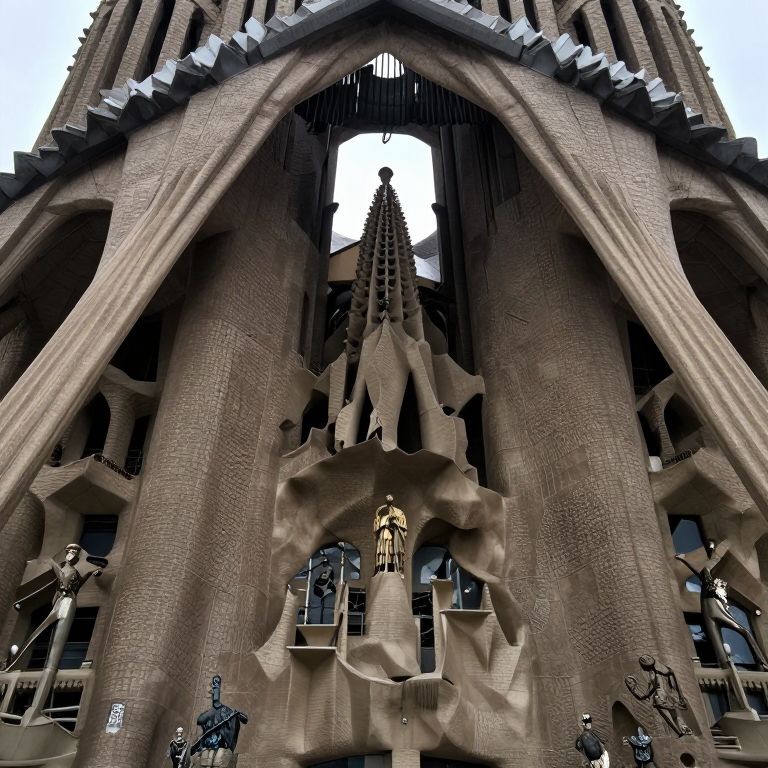 An architectural symphony of towering spires and converging lines invites introspection, where the echoes of ambition and unity resonate beneath a grand arch, symbolizing both the promise of progress and the weight of collective dreams.
