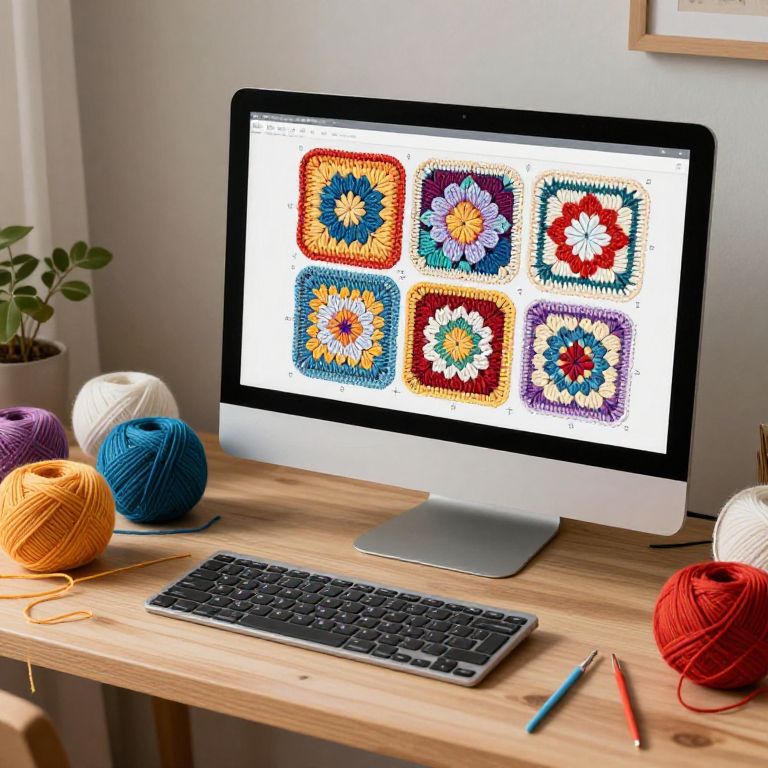 Crochet simulator in a cozy craft room setting, vibrant yarns and hooks scattered around, a digital screen displaying intricate crochet patterns, warm lighting highlighting the realistic textures of yarn and fabric, hyper-detailed, immersive art style.