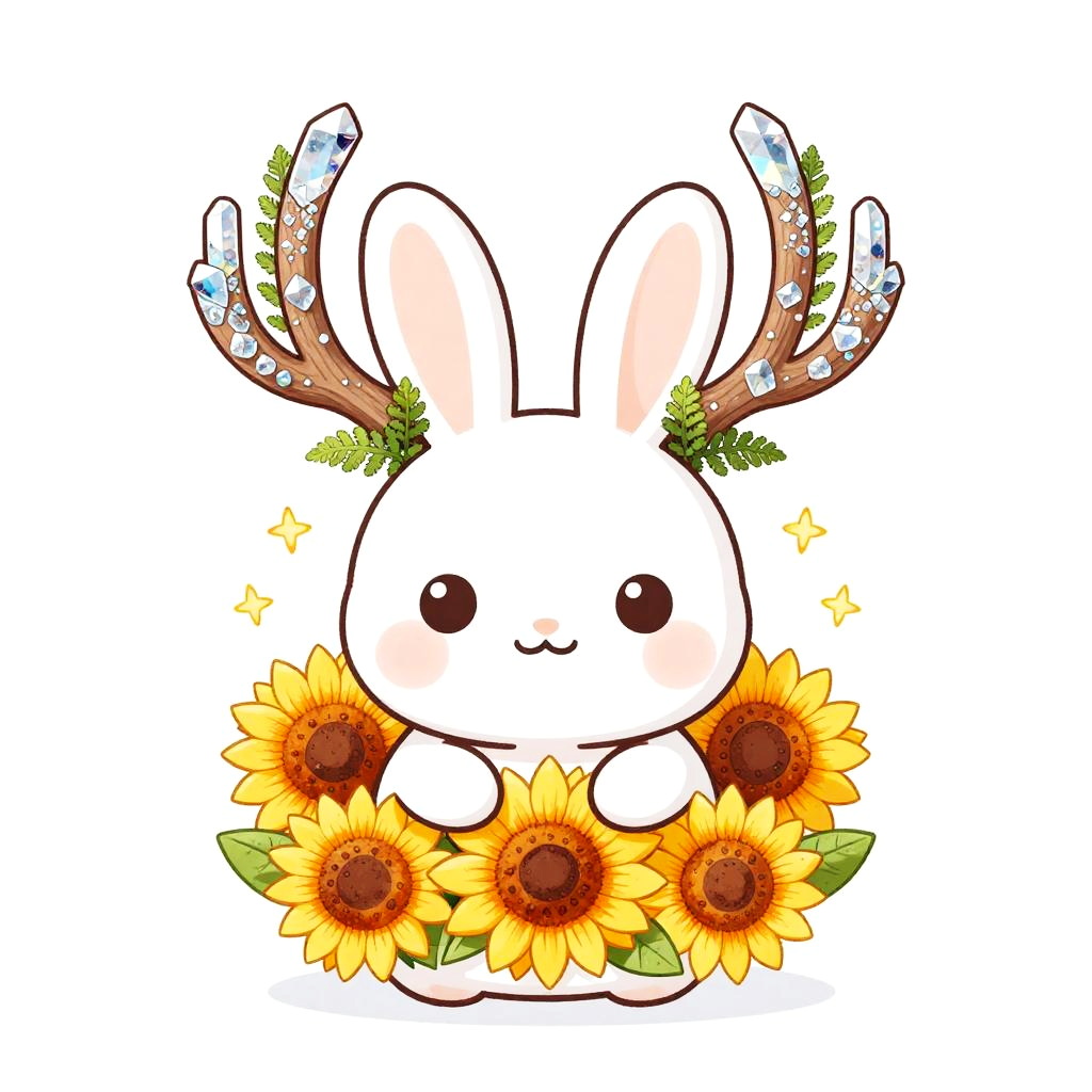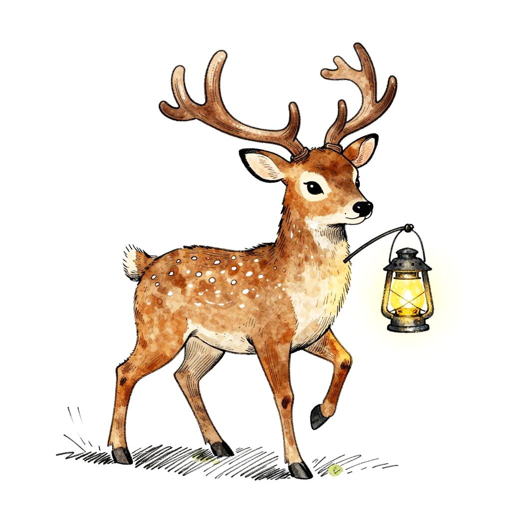 Kawaii Dreams A deer, antlers made of paper lanterns and lilacs, body covered in vines, Japanese cartoon style, completely white background.