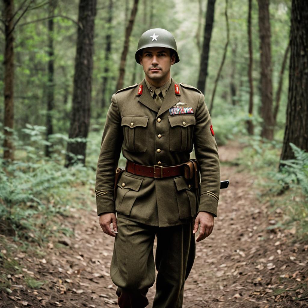 Man in Historical Military Uniform with Halloween Pumpkins