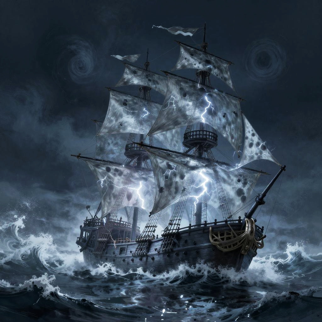Ghostly Pirate Armada on Storm Seas