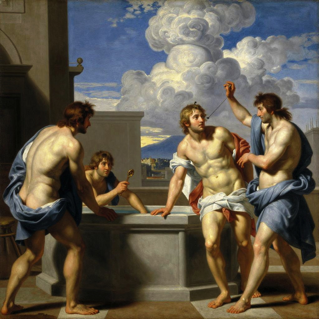 Caravaggio-Style Dramatic Sunlit Courtyard