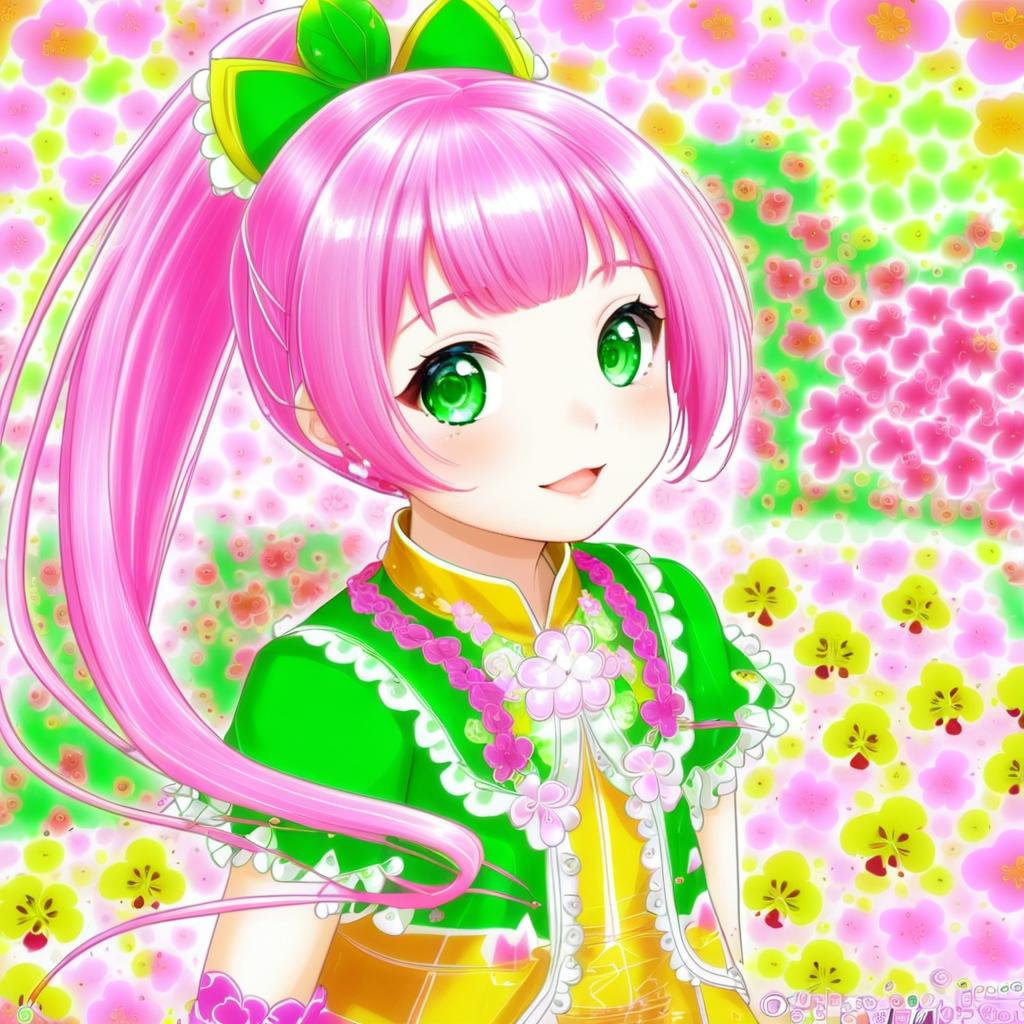 Hana (pangya), pangya, 1girl, green eyes, pink hair, long hair, ponytail, by artist abenattou, anime