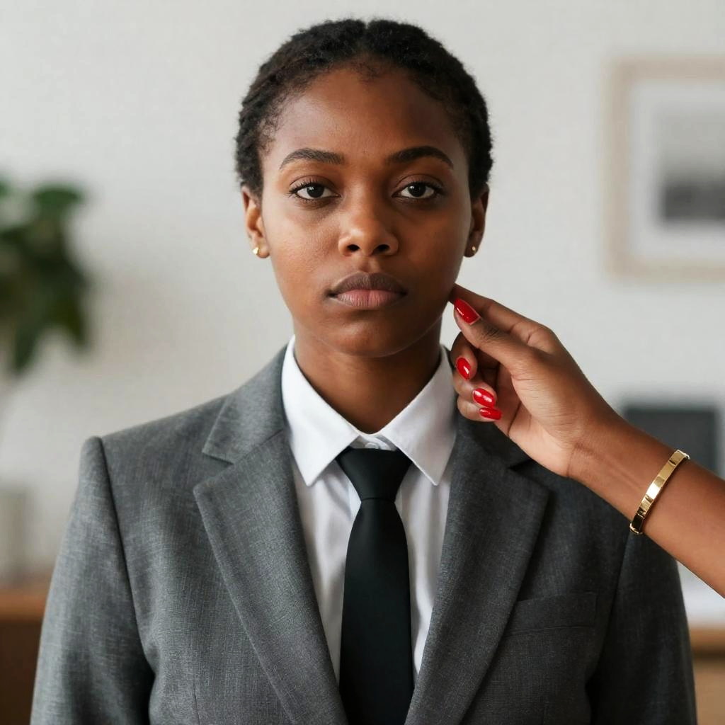 Photograph of a person with short curly black hair, wearing a yellow sleeveless top, standing in front of multiple old-style TVs. Each TV displays a different scene of a man with an afro. Background includes shelves and cables. Person's back is to the camera. Multiple screens show the man in various poses.