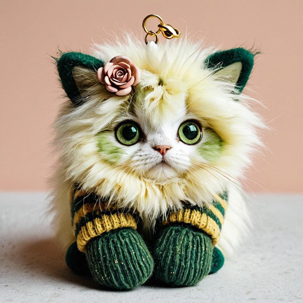 Fluffy Green-Eyed Creature Keychain