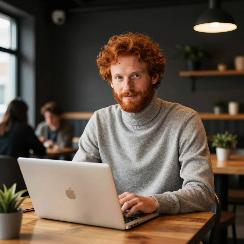 Red-Haired Man in Modern Café