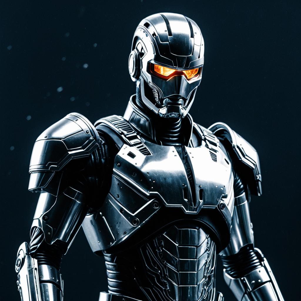 Cyborg Liquid Metal Octopus with Glowing Eyes