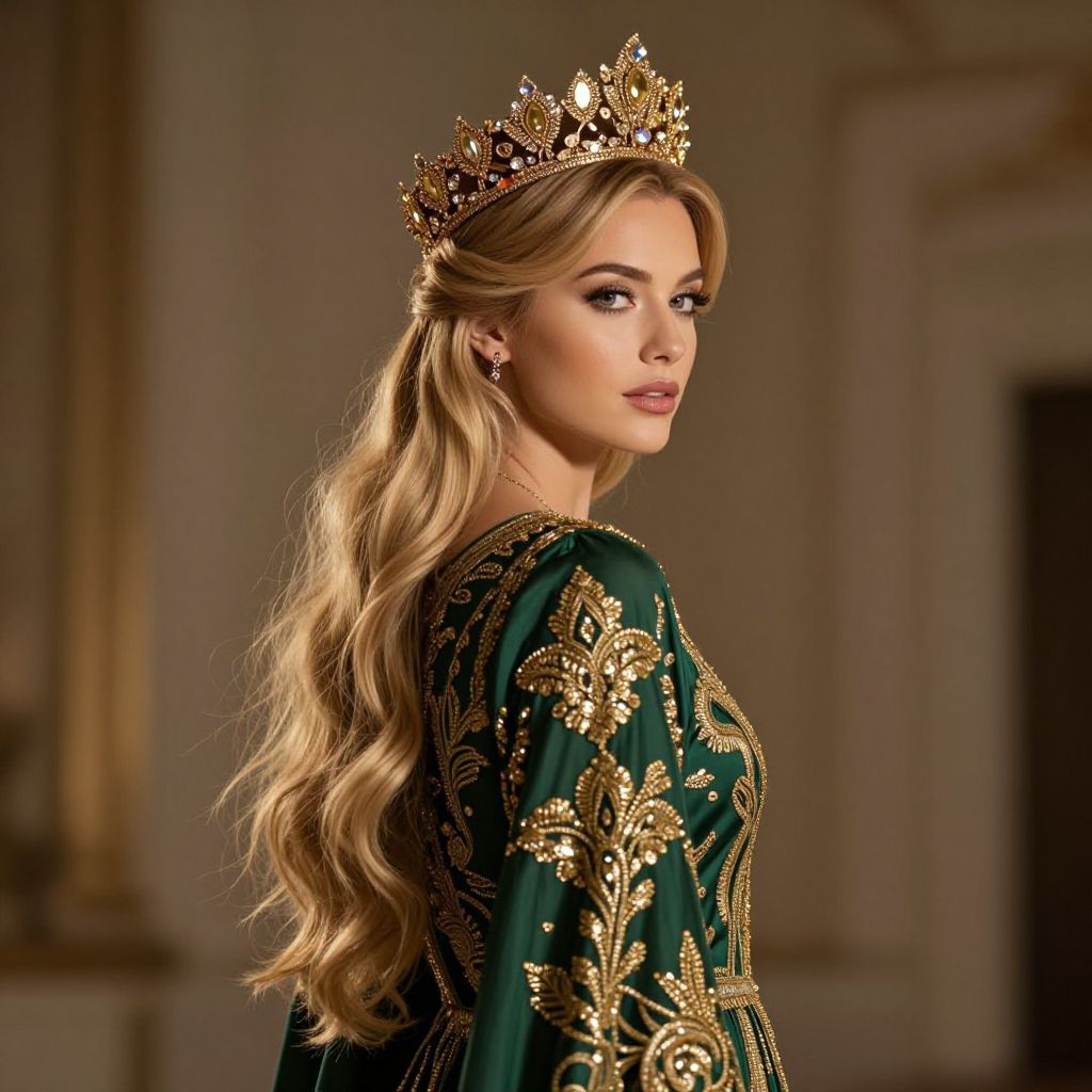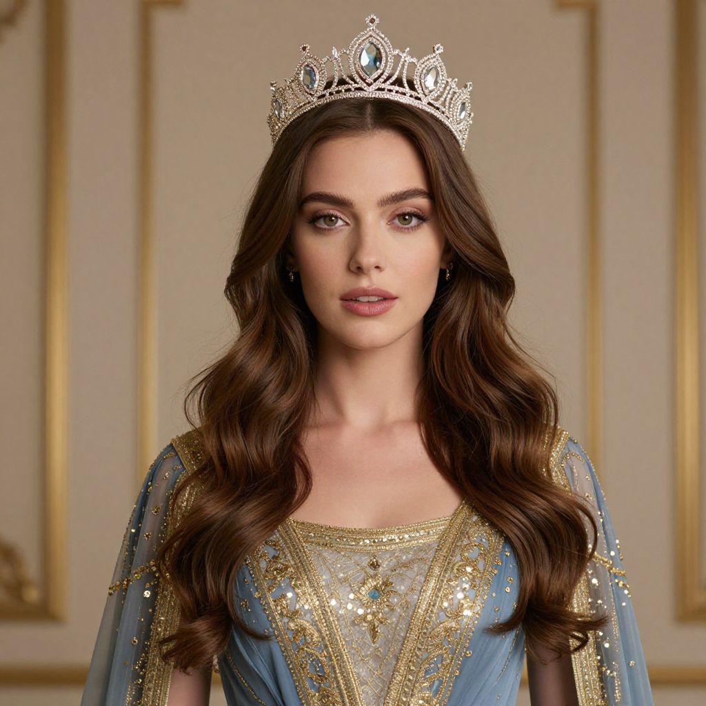 Blonde Woman in White Dress with Crown
