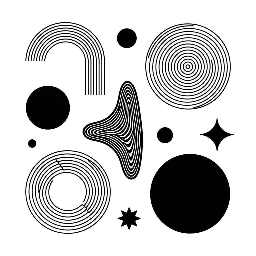 Line art generator free style, minimalist black and white abstract shapes and intricate patterns, clean bold lines with delicate detailing, high contrast, modern graphic design, digital art