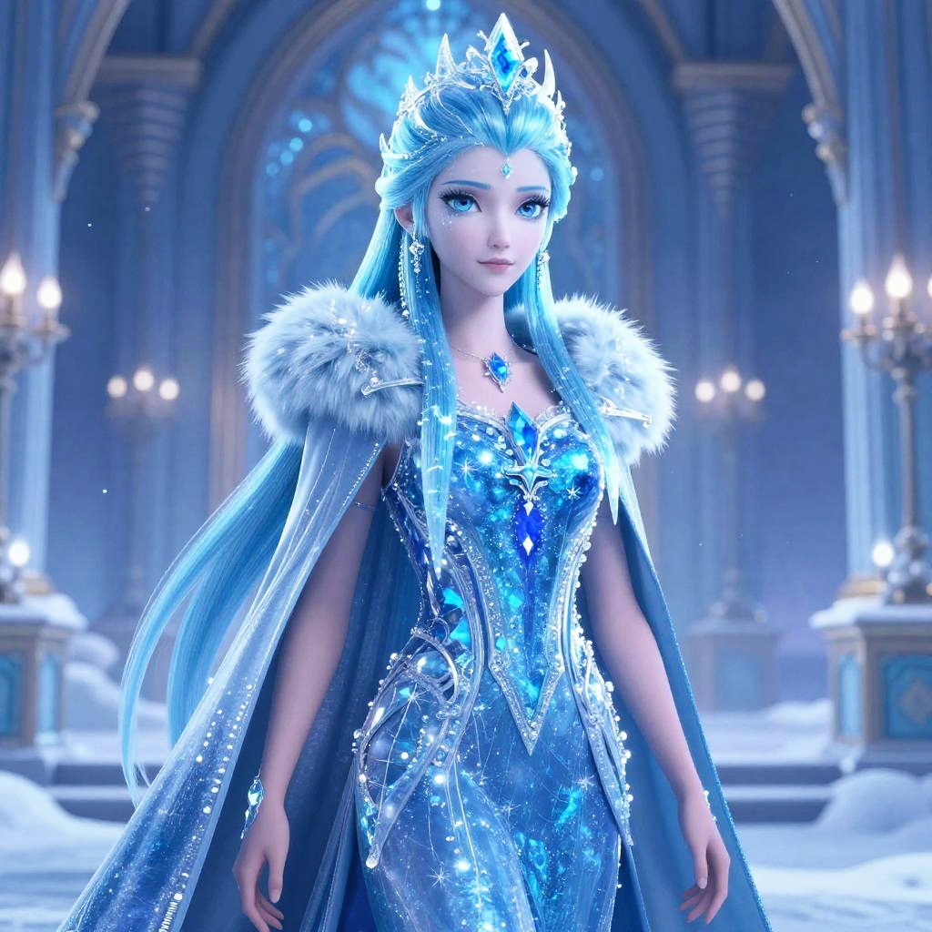 3D anime forest nymph with misty blue hair in a flowing silk gown within ancient grove in a cinematic scene