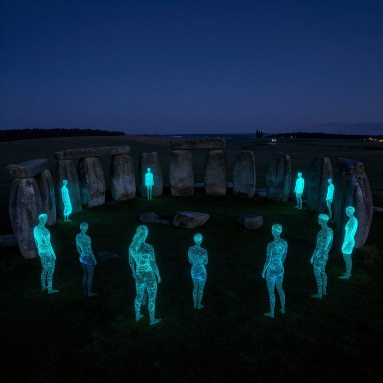 Bioluminescent Figures Around Stonehenge