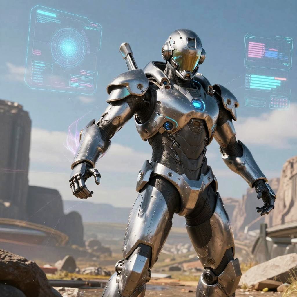 Futuristic Soldier in Cyberpunk Armor