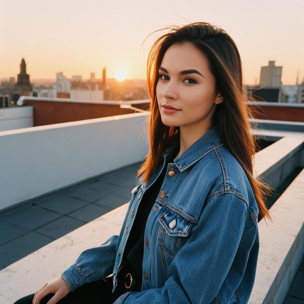 Young Woman with Side Ponytail on Rooftop at Sunset
