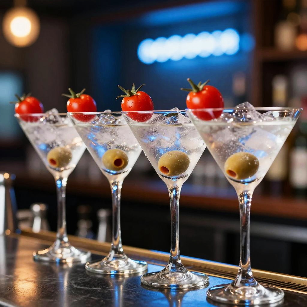 Vibrant Martini Glasses with Garnishes