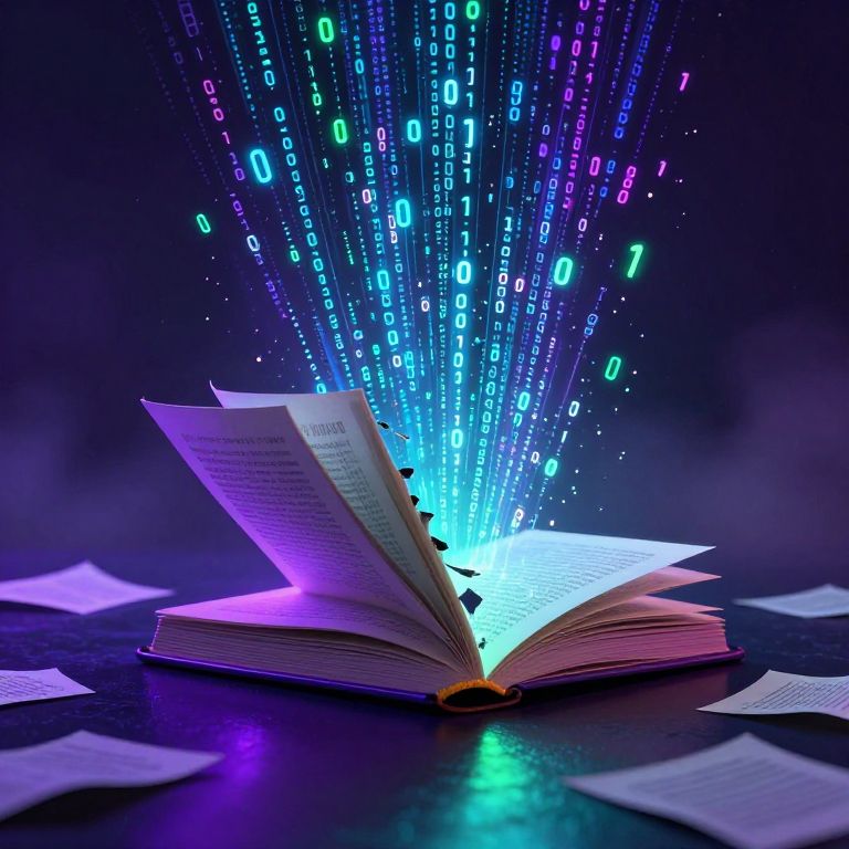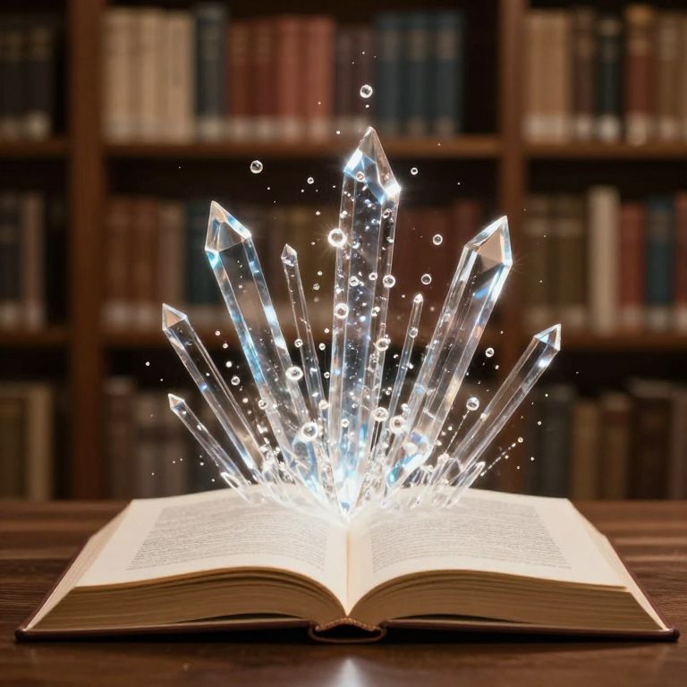In a hushed library, an open book erupts with crystalline streams of light and water, symbolizing the boundless flow of knowledge and the transformative power of stories, as if each page holds the promise of infinite possibilities and the warmth of discovery.