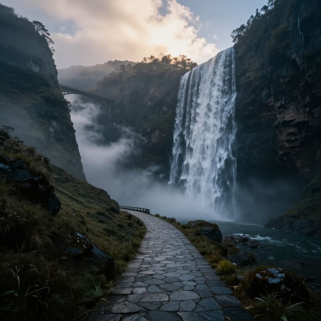 Epic High Fantasy Waterfall Landscape
