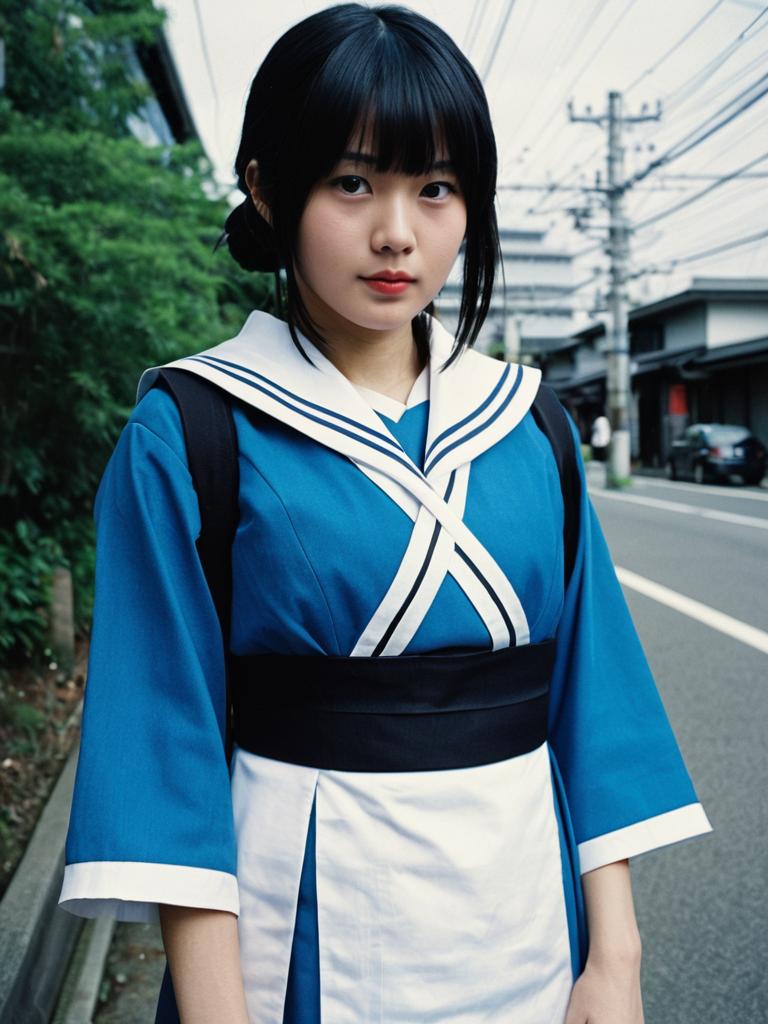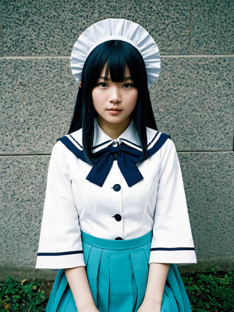 Sexy cosplay woman character wearing Shizuku Osaka costume. Realistic photo. Jane Doe dressed as Shizuku Osaka