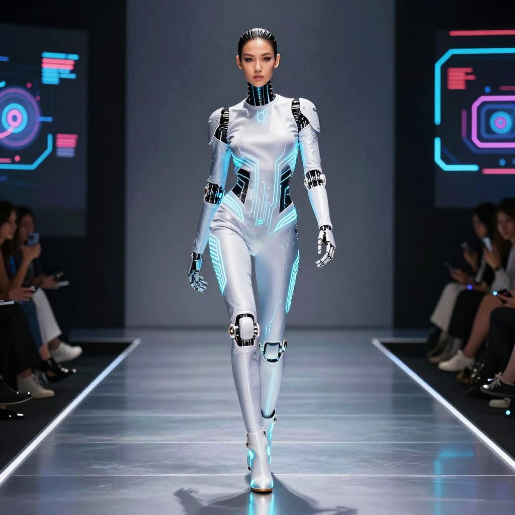 Futuristic Robotic Dancer on Cyberpunk Runway