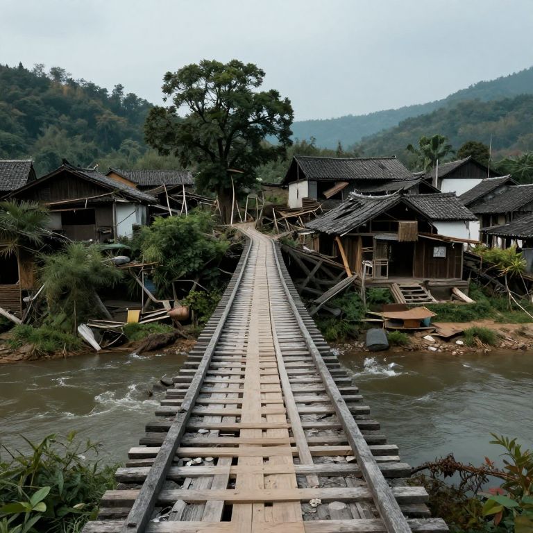 A bridge made of whispers connects two isolated villages, collapsing if anyone remembers its path.