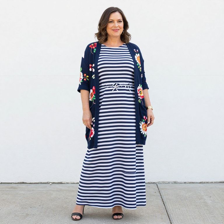 Terri wearing a striped maxi dress and floral cardigan | 40plusstyle.com